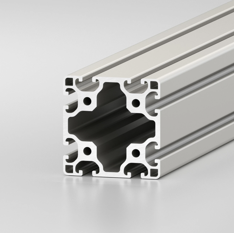Perfil T-Slot 80×80, longitud 3 m: estructura modular de aluminio resistente para marcos industriales, máquinas CNC, automatización y estaciones de trabajo.